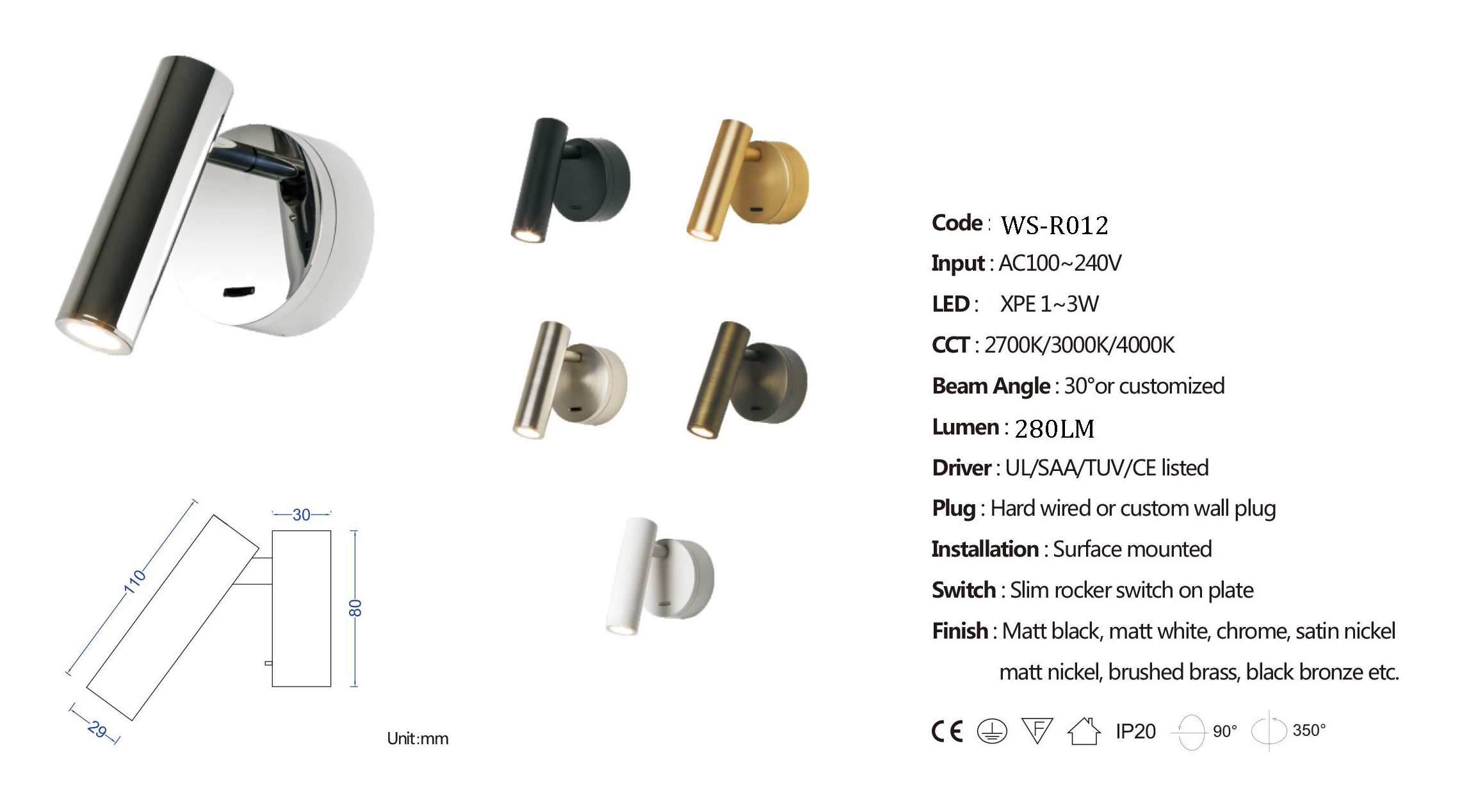12V 3W سرير بجانب سرير مع التبديل ضوء الجدار مصمم مصباح جدار القراءة مصباح جدار LED