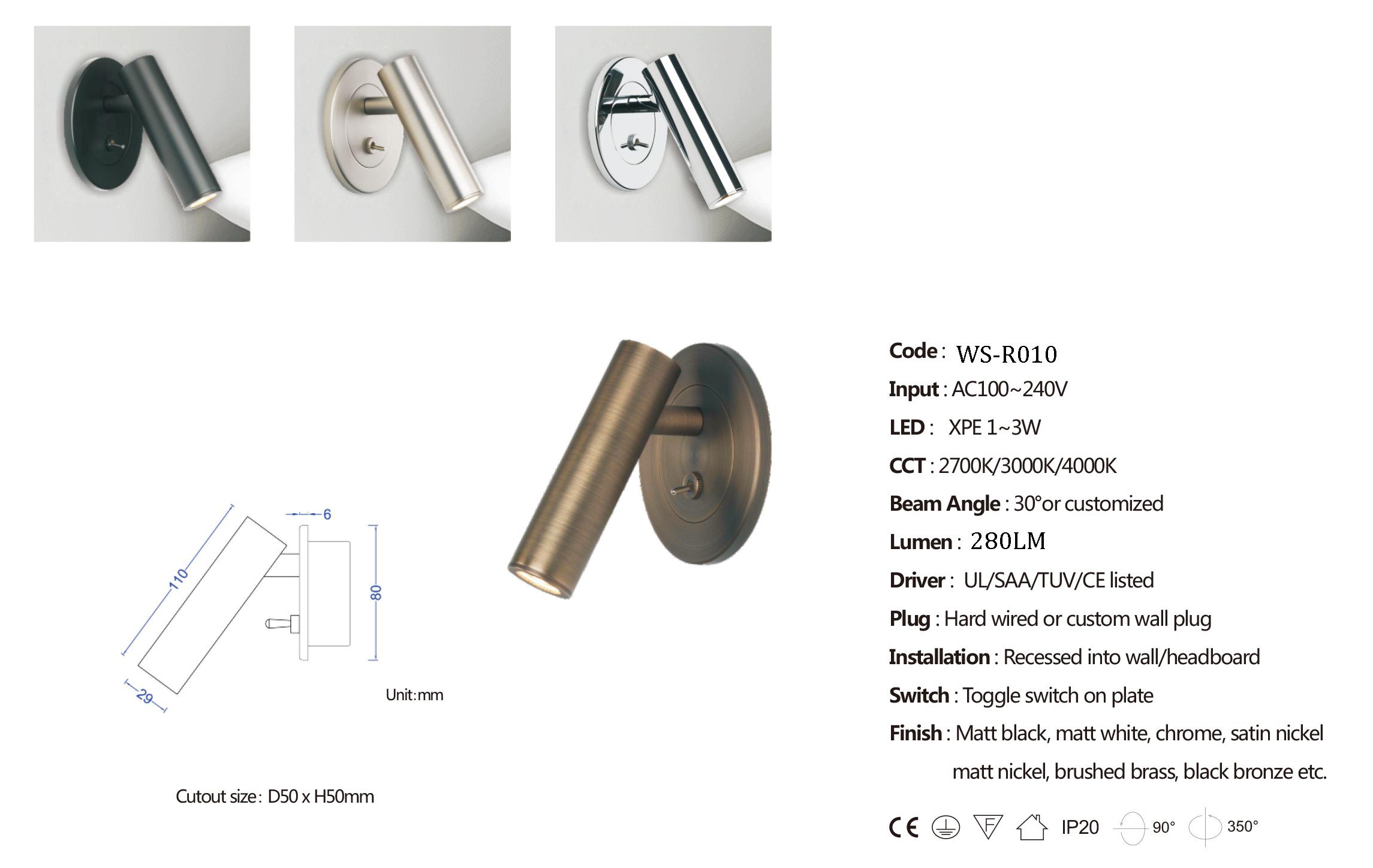 ضوء القراءة الجدار الداخلي بجانب السرير فندق مصباح قراءة قابل للتعديل LED اللوح الأمامي مصباح