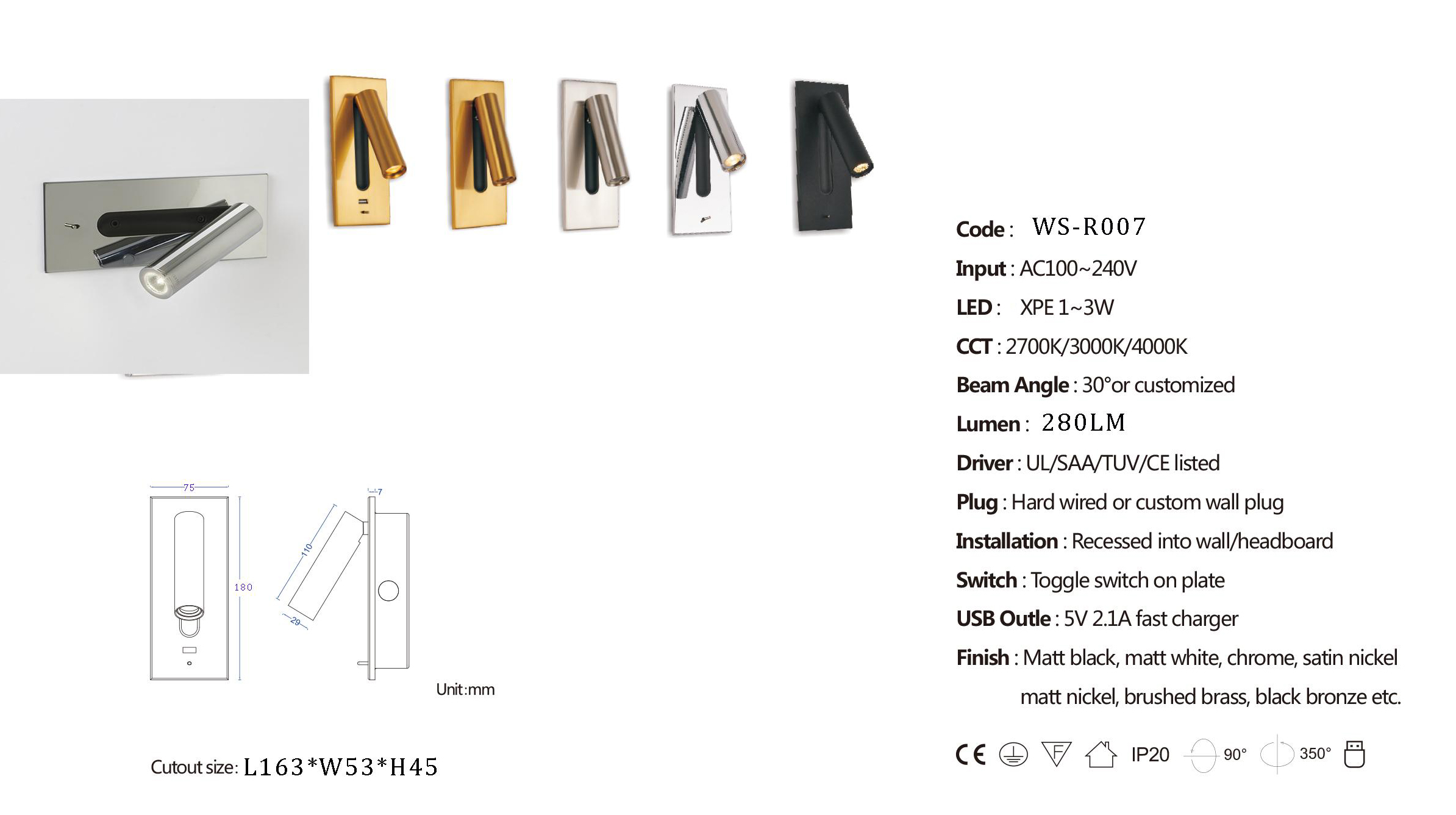 حديثة مريحة في فندق Home Home Wall Light مع ميناء USB 3W اللوح الأمامي الجدار المصباح LED LED BED LAMP