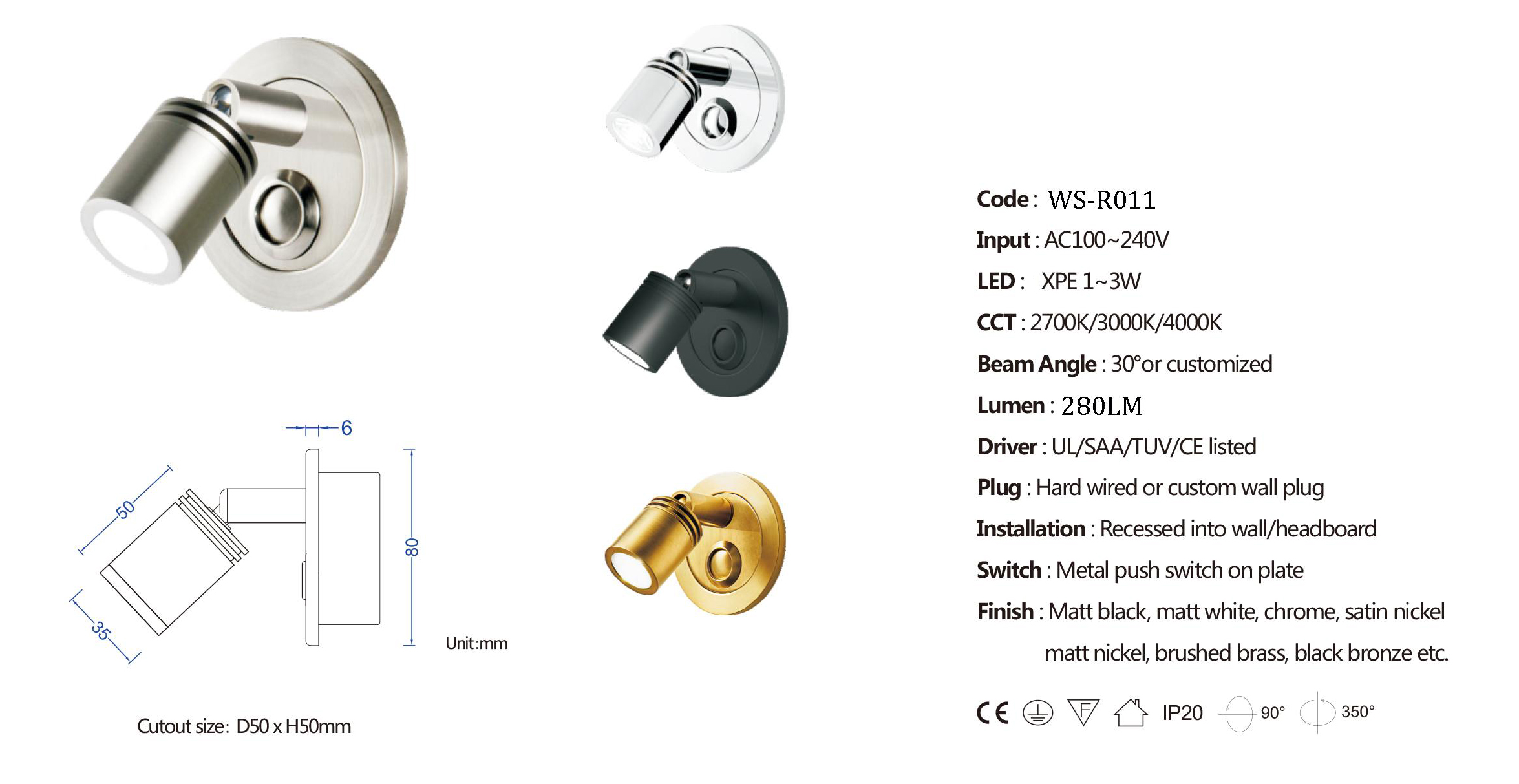ضوء القراءة الجدار الداخلي بجانب السرير فندق مصباح قراءة قابل للتعديل LED اللوح الأمامي مصباح