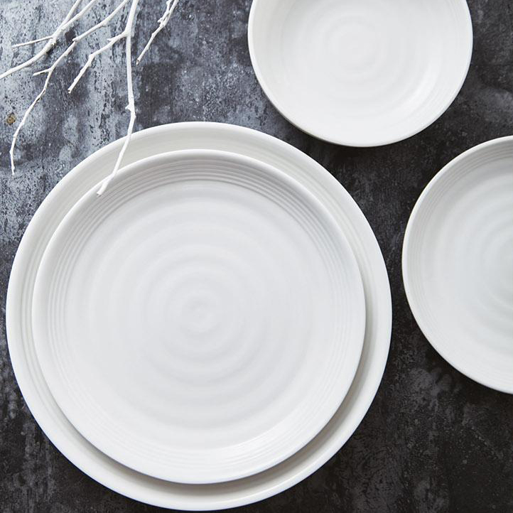 أبيض مستديرة المأدبة مطعم الأوساخ السيراميك لوحات فندق عظم عشاء الصين لوحات عشاء