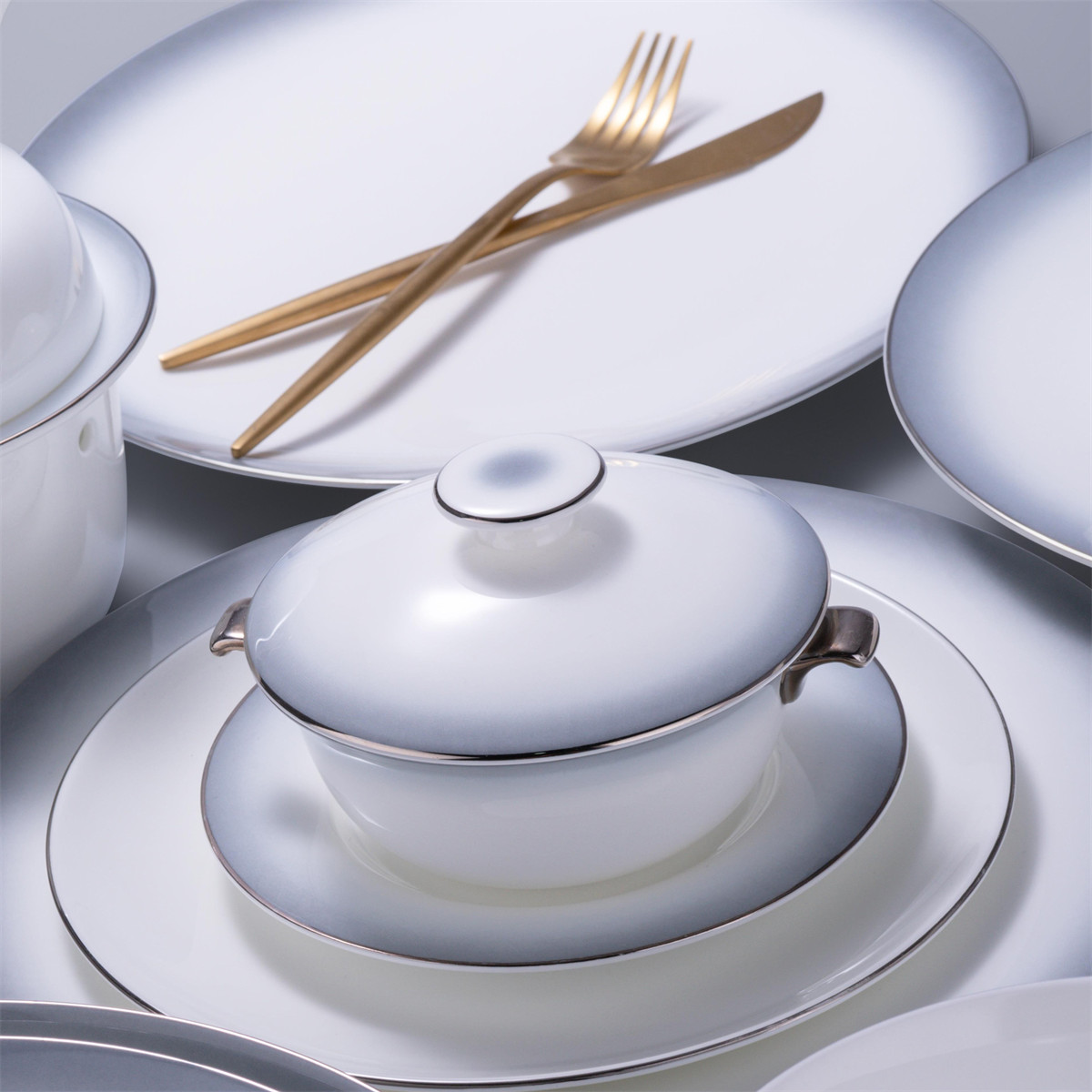 بيت » منتجات » إمدادات الفنادق » أدوات المطبخ » العظام الصين » مجموعات صفيحة عشاء عظام الأدوات الخزفية المخصصة