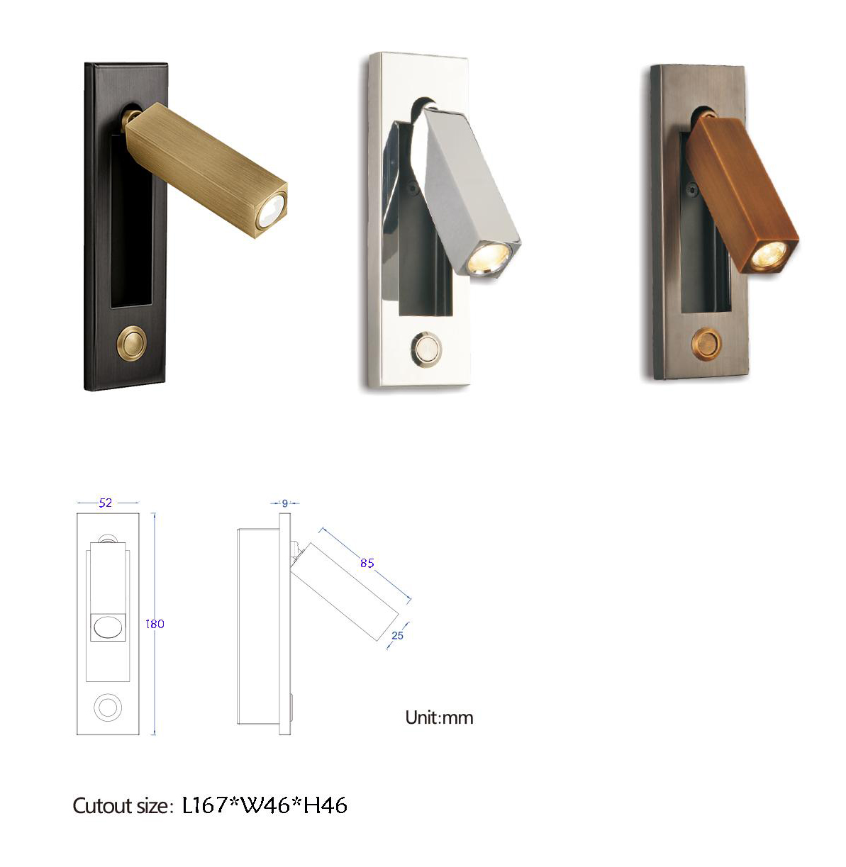 ضوء القراءة الجدار الداخلي بجانب السرير فندق مصباح قراءة قابل للتعديل LED اللوح الأمامي مصباح